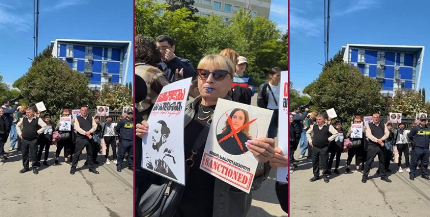 იუსტიციის უმაღლეს სკოლასთან, სადაც მოსამართლეები უნდა შეიკრიბონ, საპროტესტო აქცია იმართება
