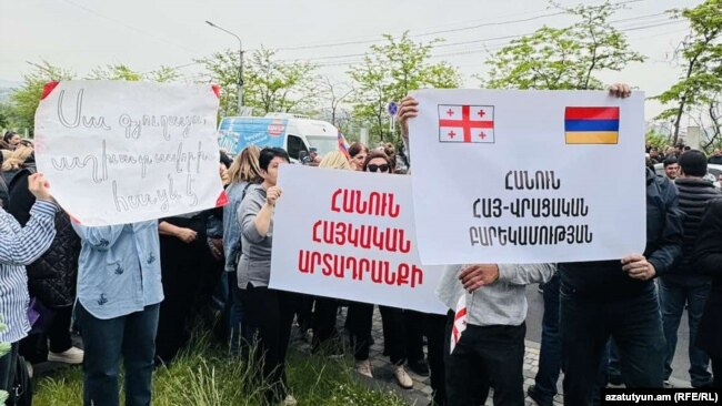 სომეხმა მეწარმეებმა ერევანში, საქართველოს საელჩოსთან საპროტესტო აქცია გამართეს