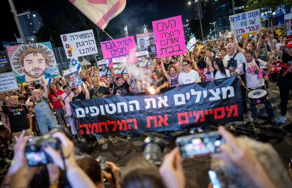 „ჰამასის“ ტყვეობაში მყოფი მძევლების გათავისუფლების მოთხოვნით თელ ავივში საპროტესტო აქცია გაიმართა