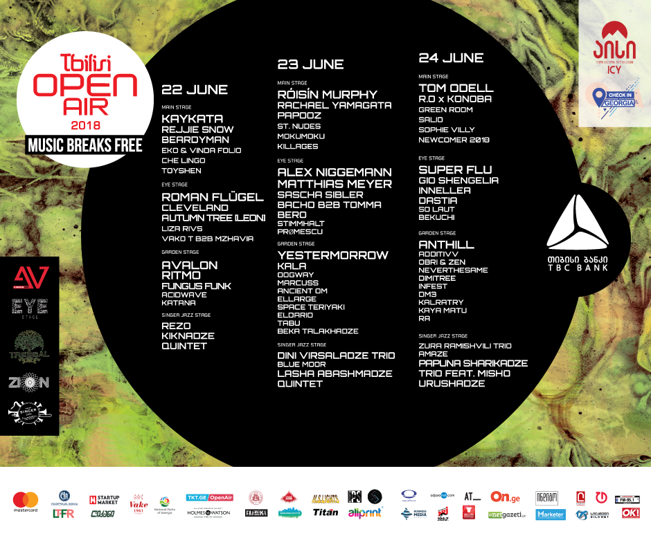 TBILISI OPEN AIR 2018 22-24 ივნისს გაიმართება - სრული ლაინაფი