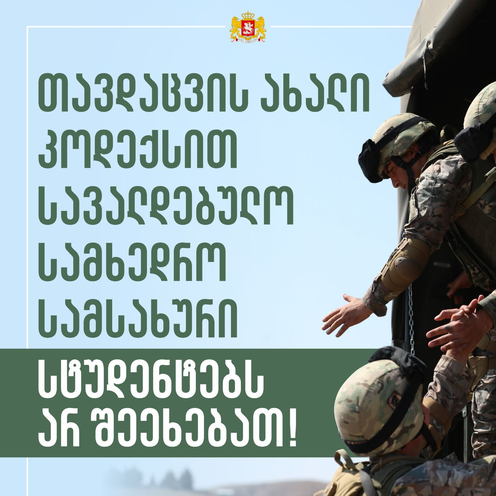 ახალი „თავდაცვის კოდექსით“ სტუდენტებს სამხედრო სავალდებულო სამსახური არ შეეხებათ