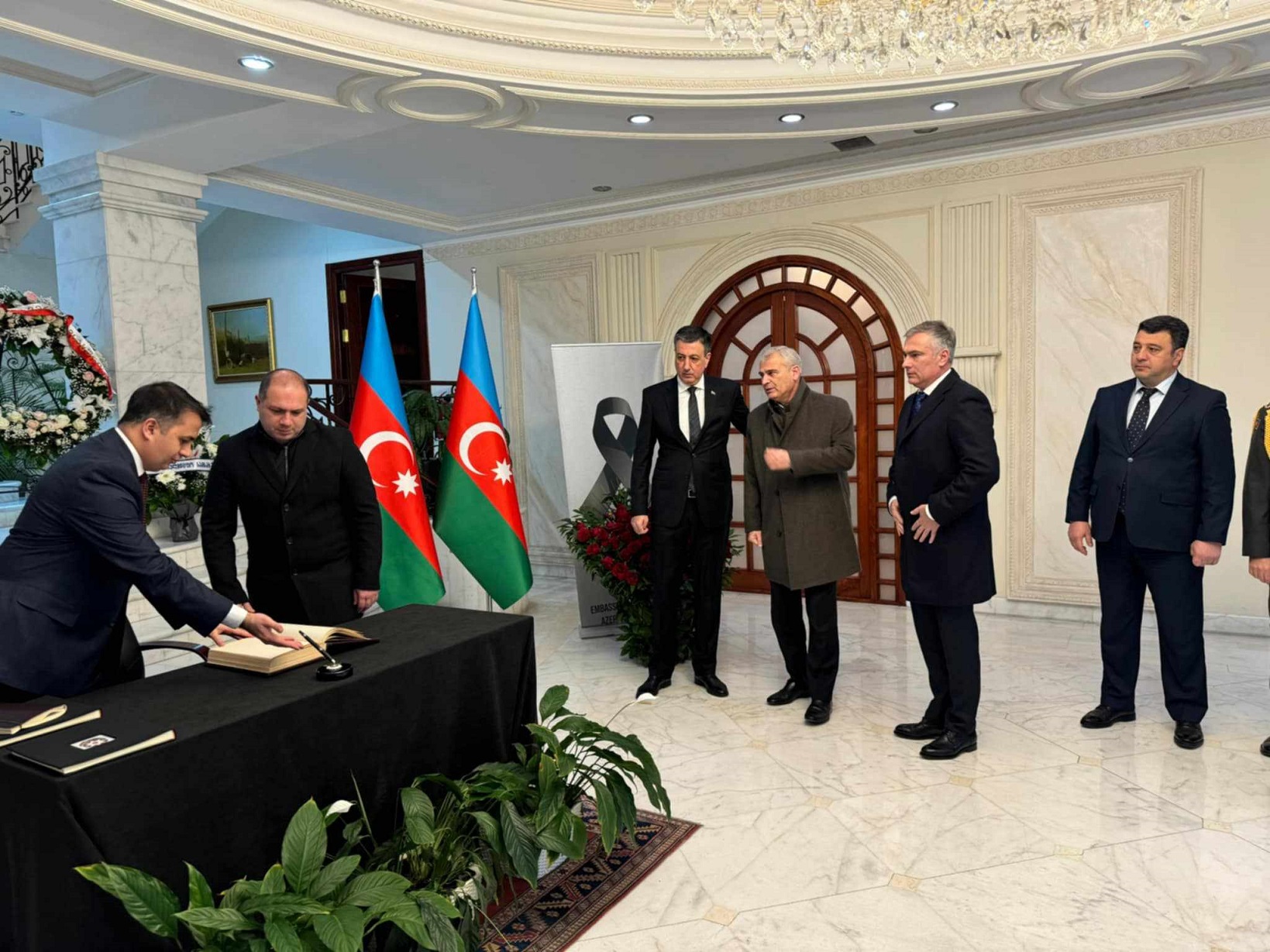 საკანონმდებლო ორგანოს წევრებმა აზერბაიჯანის საელჩოში გახსნილ სამძიმრის წიგნში ჩანაწერი გააკეთეს