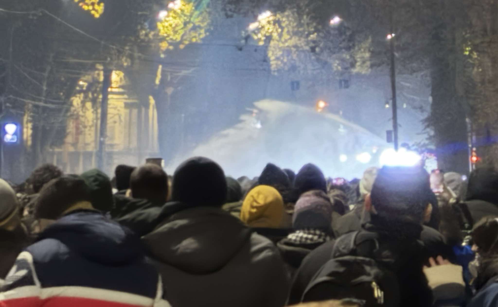 რუსთაველის გამზირზე წყლის ჭავლის გამოყენება დაიწყეს