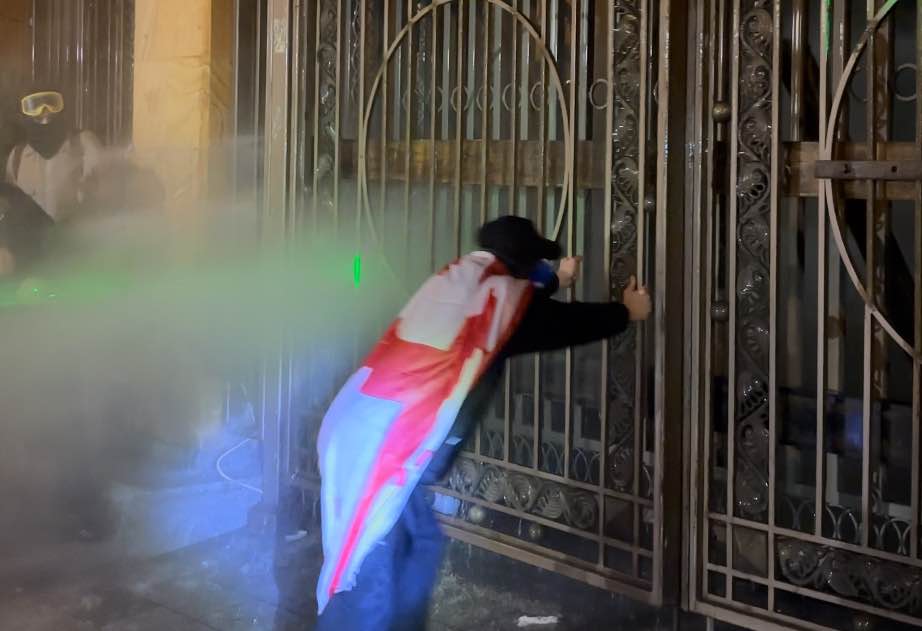 აქციის მონაწილეებმა პარლამენტის რკინის კარი დააზიანეს - წყლის ჭავლს საკანონმდებლო ორგანოს ეზოდანაც უშვებენ [ვიდეო]
