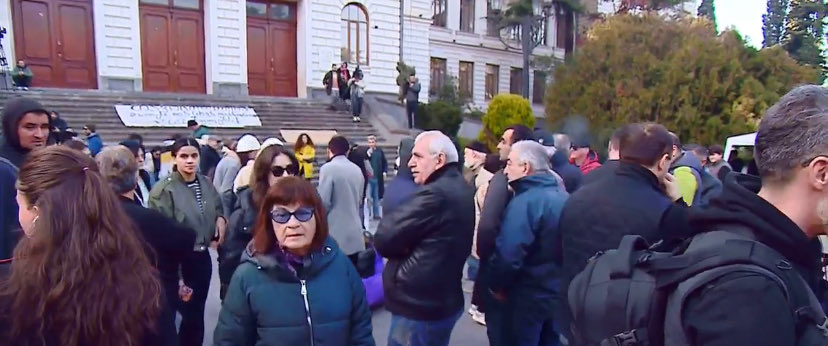 თსუ-ს პირველ კორპუსთან საპროტესტო აქციის მონაწილეები იკრიბებიან