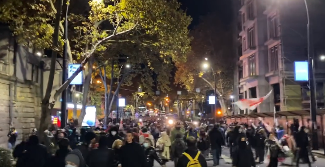 საპროტესტო აქციამ მელიქიშვილის გამზირზე გადაინაცვლა , პოლიციის დიდმა ნაწილმა გამზირი დატოვა