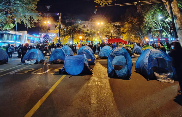 სახელმწიფო უნივერსიტეტის პირველი კორპუსის მიმდებარედ პროტესტი გრძელდება - აქციის მონაწილეებმა ღამე კარვებში გაათენეს