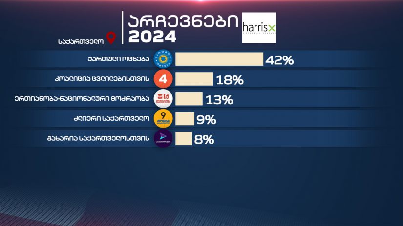 Harris X-ის ეგზიტპოლი - „ოცნება“ - 42%, „კოალიცია ცვლილებისთვის“ - 18%, „ერთიანობა - ნაციონალური მოძრაობა“ - 13%