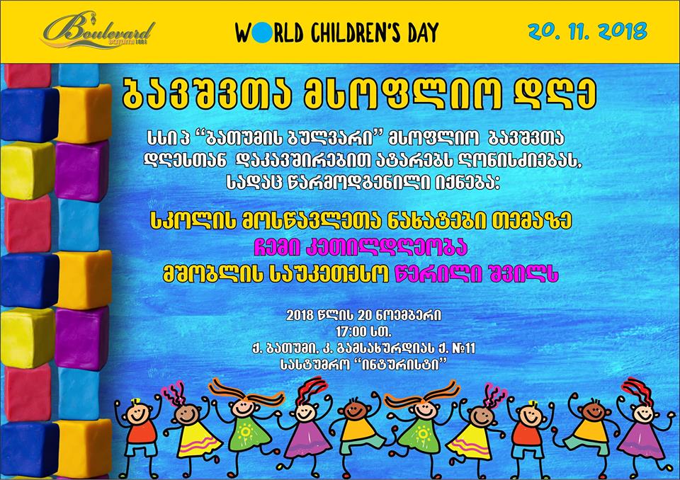 ბავშვთა დღესთან დაკავშირებით, „ბათუმის ბულვარი“-ს ორგანიზებით გამოფენა „ჩემი კეთილდღეობა“ გაიმართება
