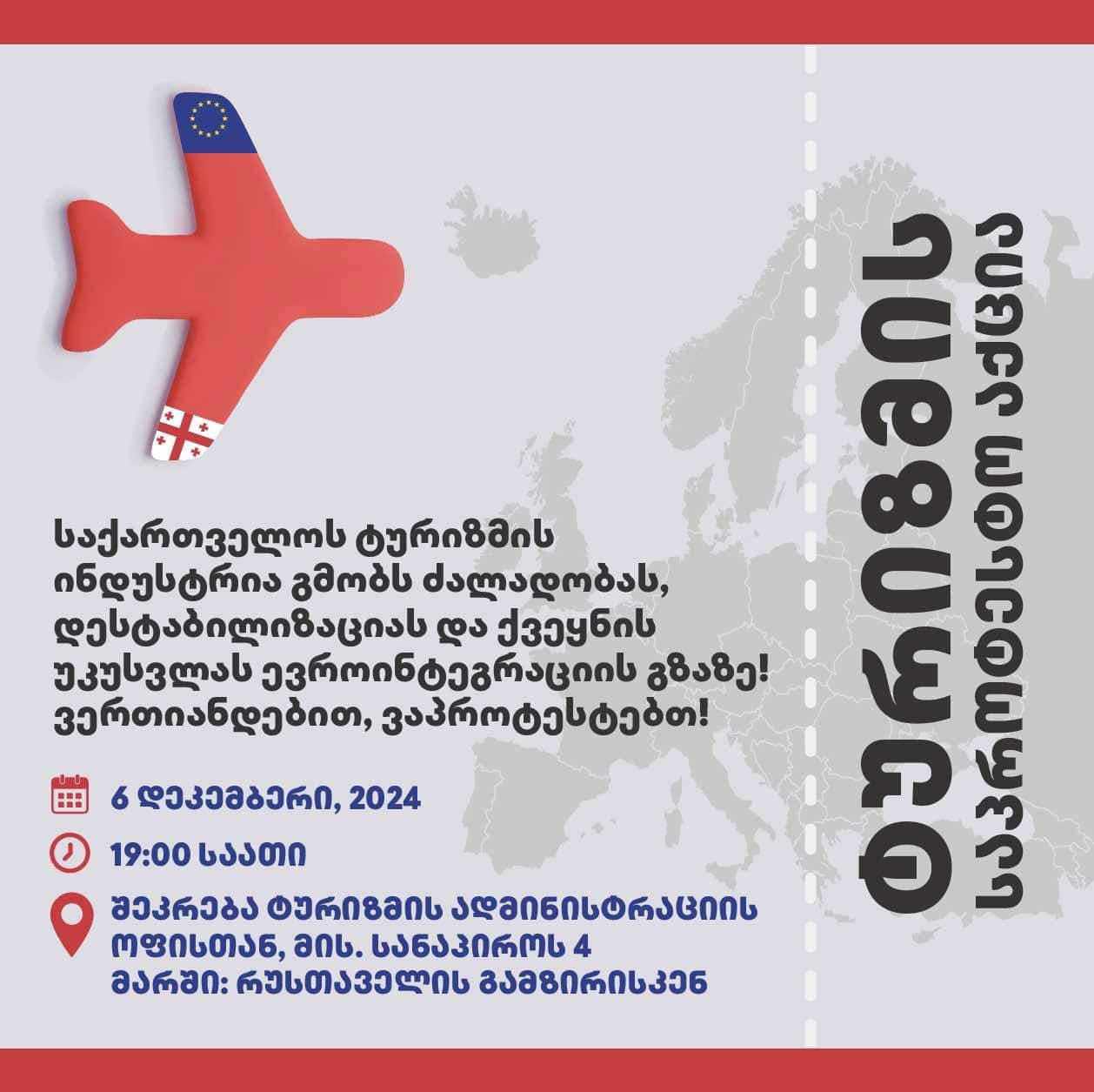 19:00 საათზე ტურიზმის ადმინისტრაციის ოფისიდან რუსთაველის გამზირისკენ საპროტესტო მარში გაიმართება