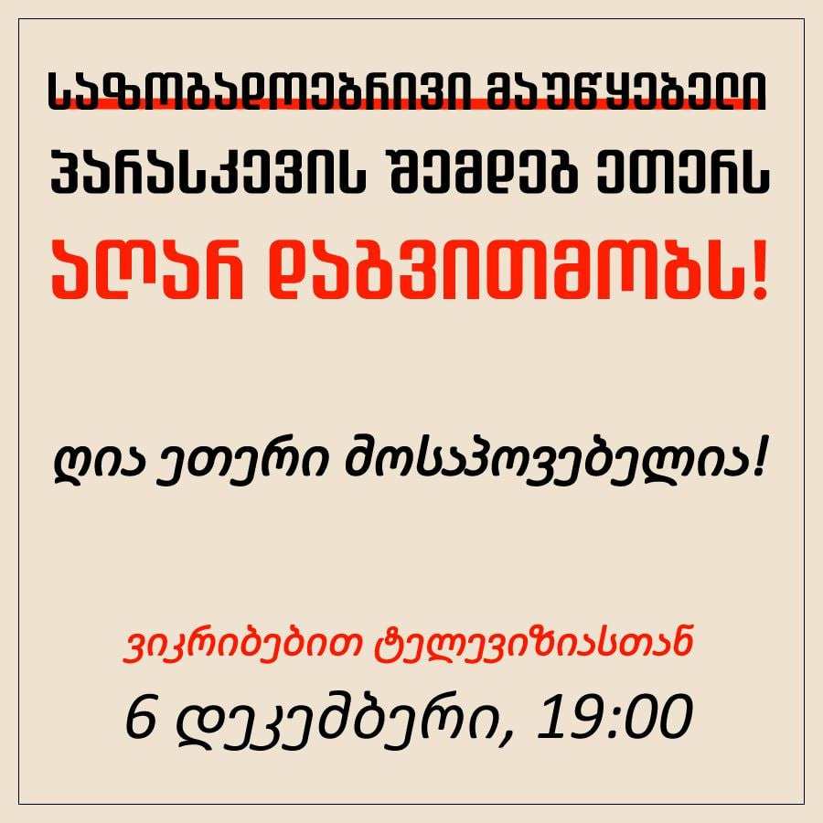 „ღია ეთერი მოსაპოვებელია!“ - მოქალაქეები 19:00 საათზე საზოგადოებრივ მაუწყებელთან შეიკრიბებიან