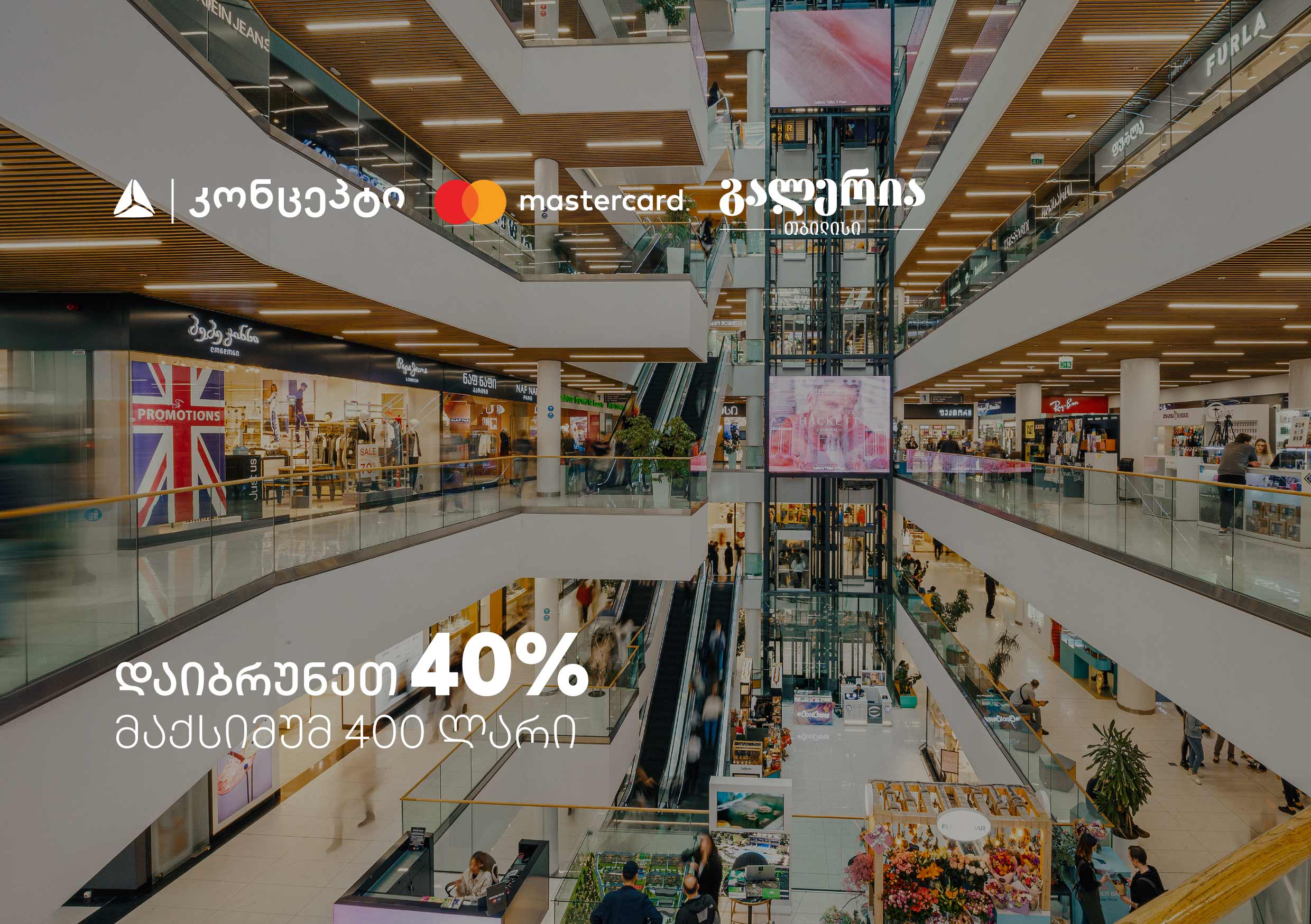 9 სექტემბერს გალერია თბილისში დაიბრუნეთ 40% - შეთავაზება თიბისი კონცეპტ Mastercard სადებეტო ბარათებზე