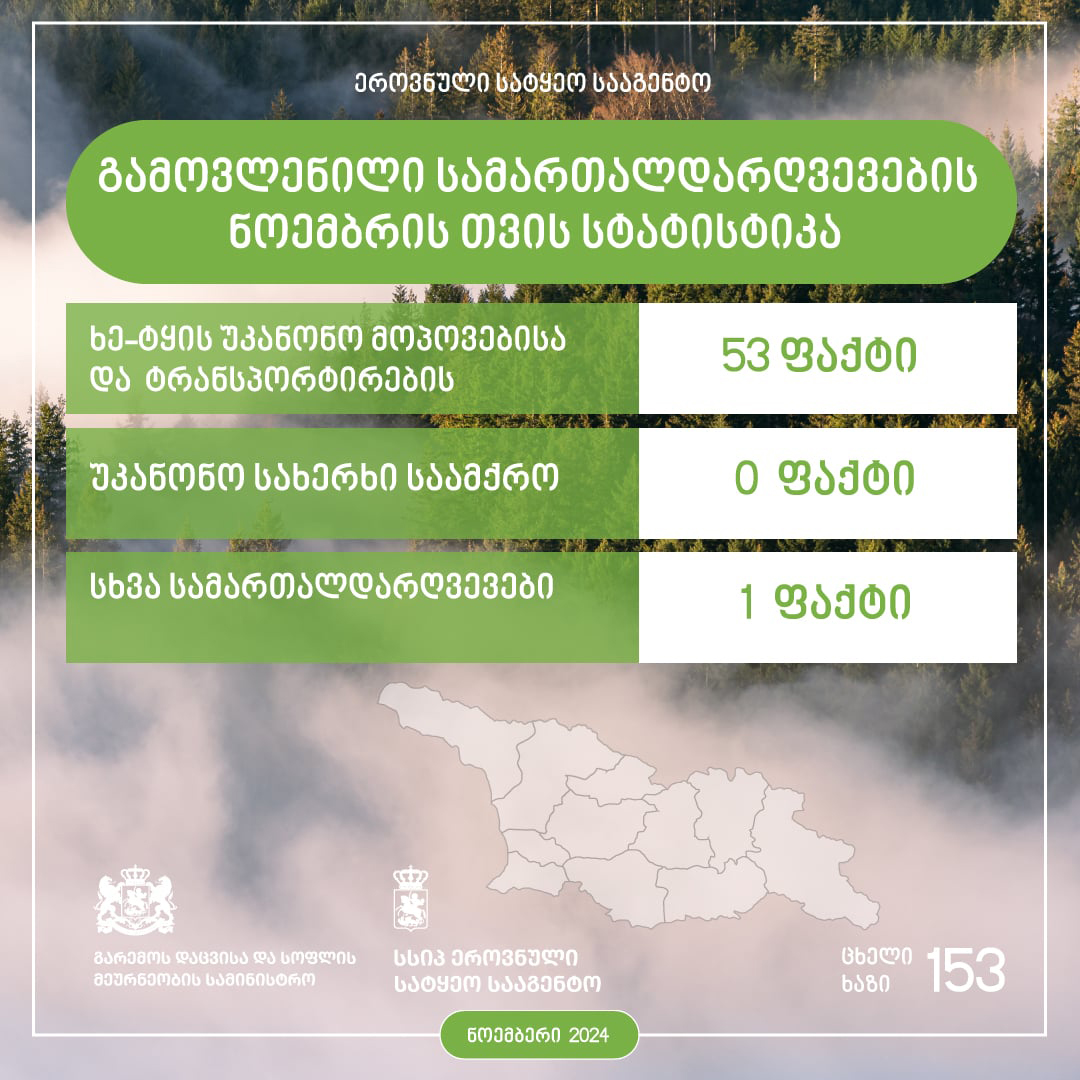 ეროვნული სატყეო სააგენტოს თანამშრომლებმა სამართალდარღვევის 54 ფაქტი გამოავლინეს