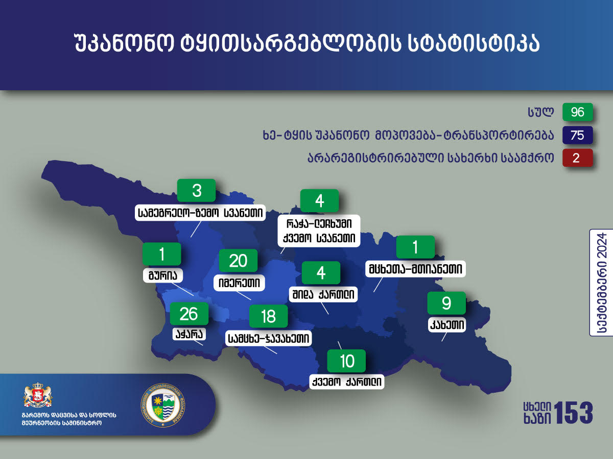 გარემოსდაცვითი ზედამხედველობის დეპარტამენტის თანამშრომლებმა სექტემბერში უკანონო ტყითსარგებლობის 96 ფაქტი გამოავლინეს