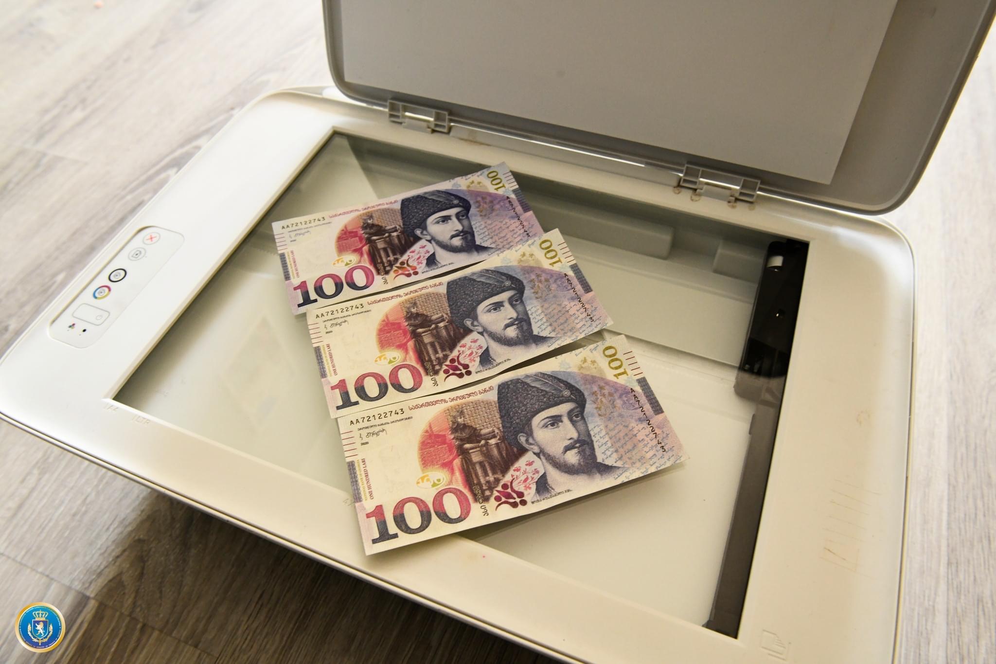 საგამოძიებო - ყალბი 100-ლარიანი კუპიურების დამზადება-გასაღების ფაქტზე ერთი პირი დავაკავეთ