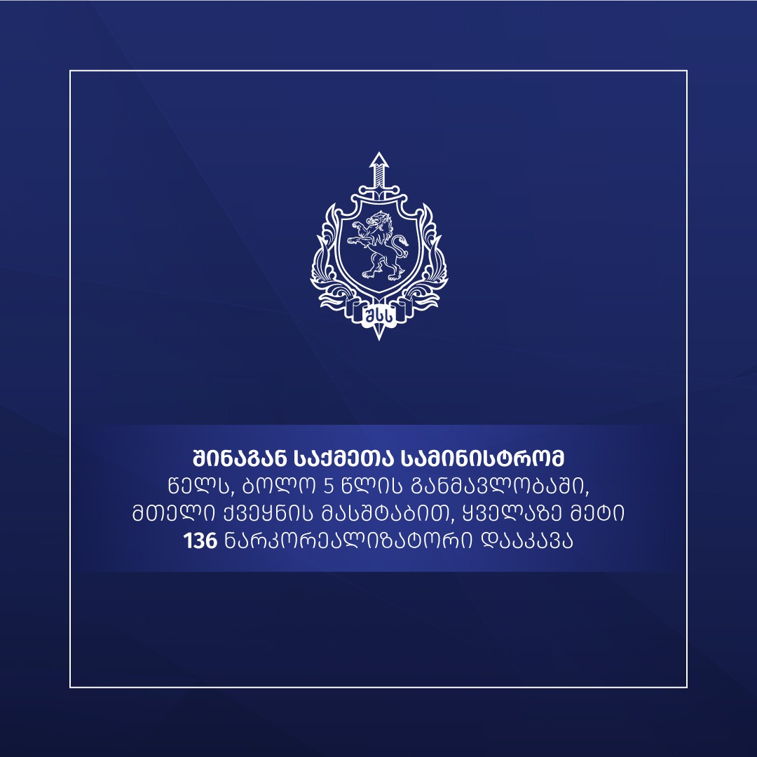 შს სამინისტრომ ბოლო 5 წლის განმავლობაში 2021 წელს ყველაზე მეტი ნარკორეალიზატორი დააკავა