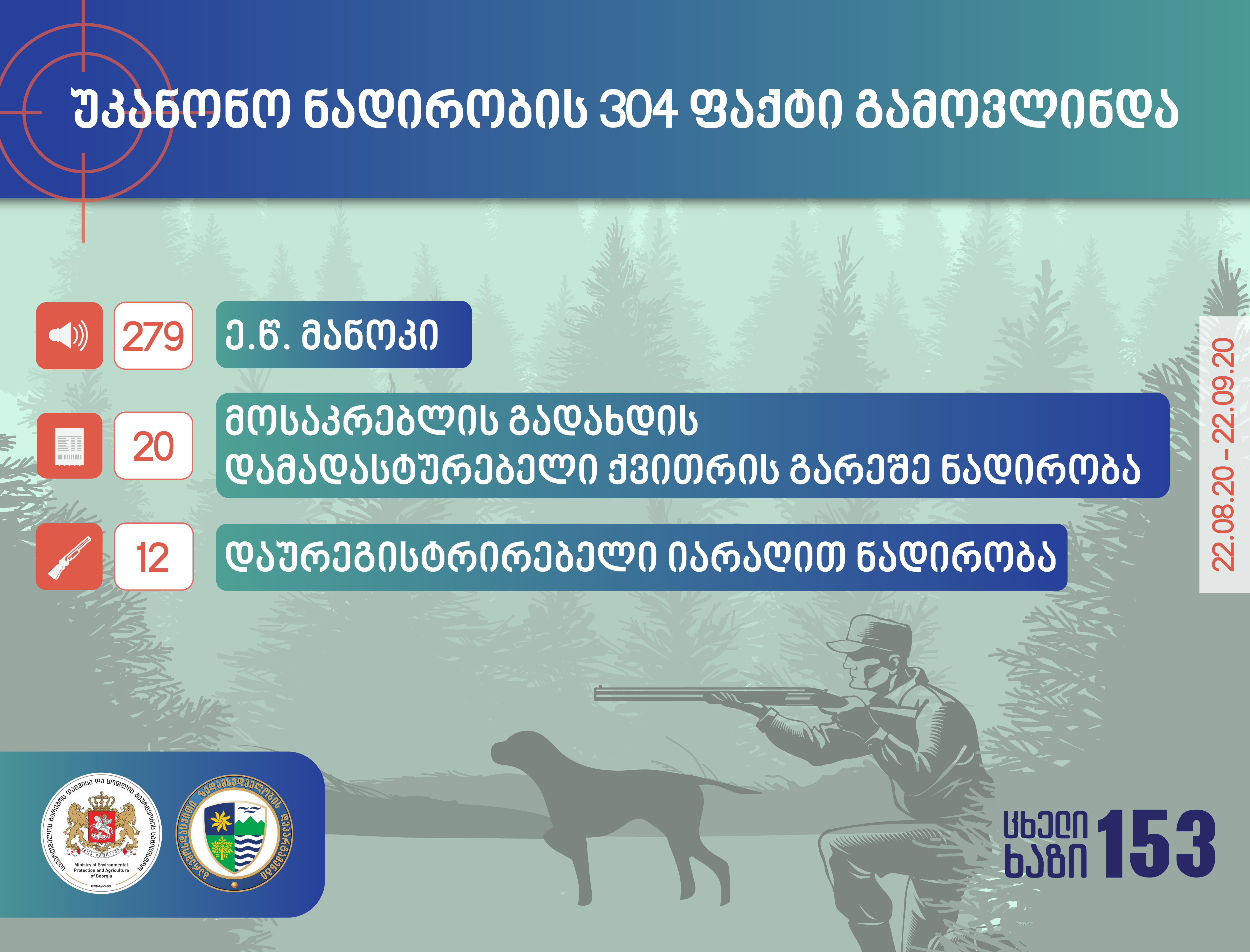 ნადირობის სეზონის გახსნიდან დღემდე, უკანონო ნადირობის 304 ფაქტი გამოვლინდა