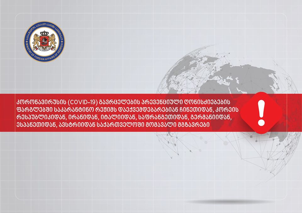 კორონავირუსის გამო, საზღვრის კვეთისას შეზღუდვებს დამატებით 4 ქვეყნიდან მომავალი მგზავრებიც დაექვემდებარებიან