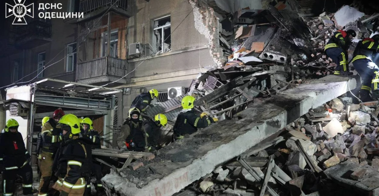 ოდესაში, ღამით მომხდარი თავდასხმის შედეგად 22 ადამიანი დაშავდა, სამი ადამიანი შესაძლოა ნანგრევების ქვეშ იყოს