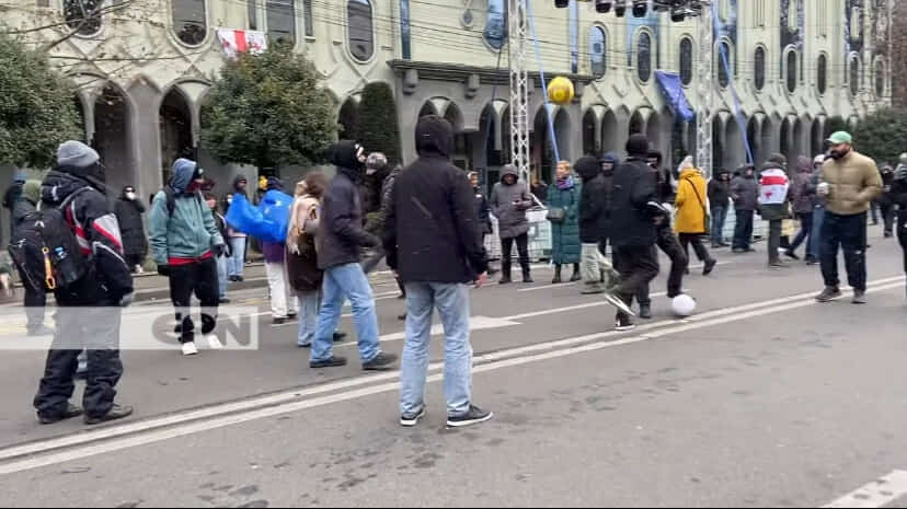 აქციის მონაწილეები პარლამენტთან ბურთს თამაშობენ - საკანონმდებლო ორგანოში პრეზიდენტის არჩევნები გრძელდება [ვიდეო]