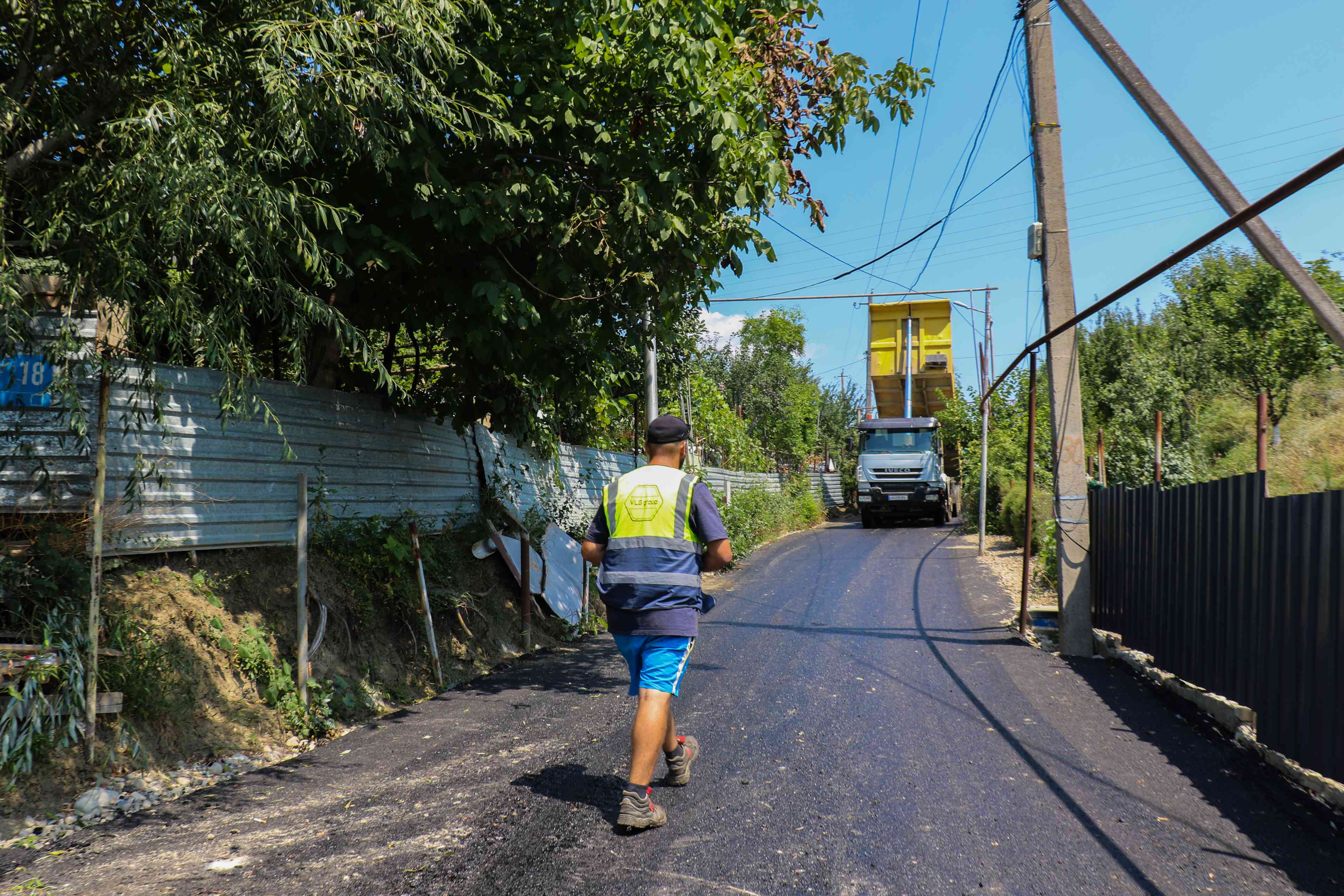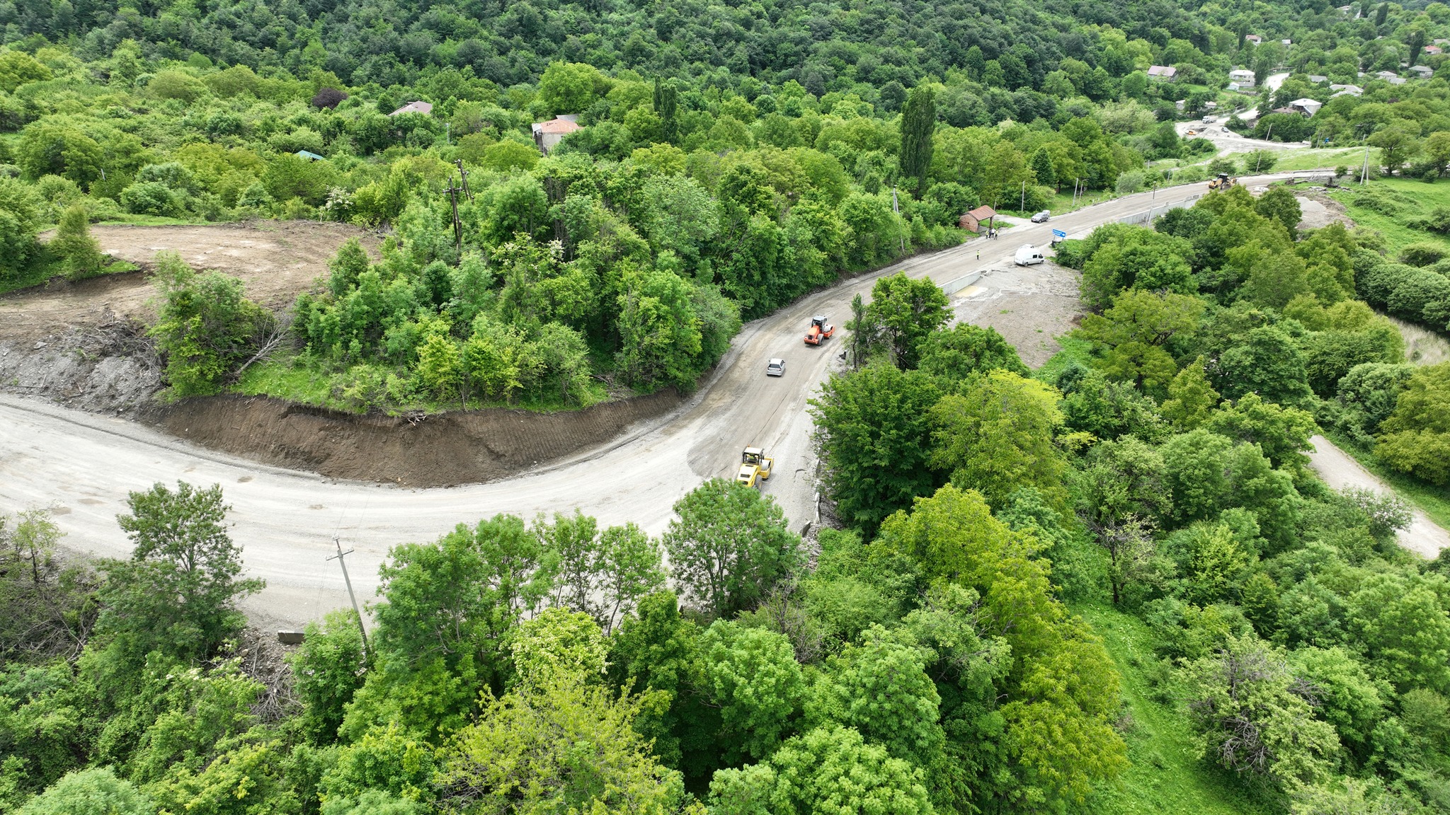 გლდანის რაიონის გამგეობა გიორგიწმინდას დასახლებაში, 9 აპრილის ქუჩაზე საგზაო სამუშაოებს ახორციელებს