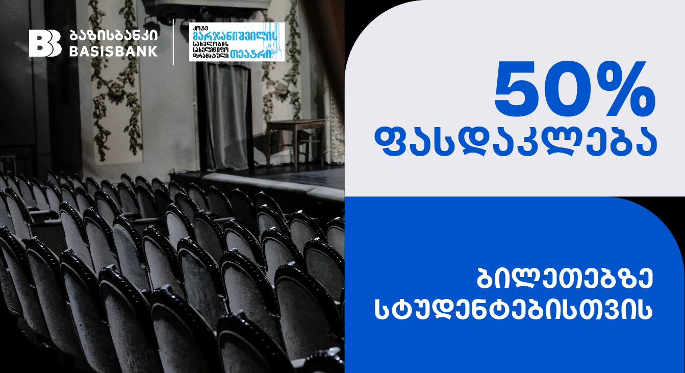 50% ფასდაკლება სტუდენტებს მარჯანიშვილის თეატრის სპექტაკლებზე - თეატრის გენერალური სპონსორია ბაზისბანკი