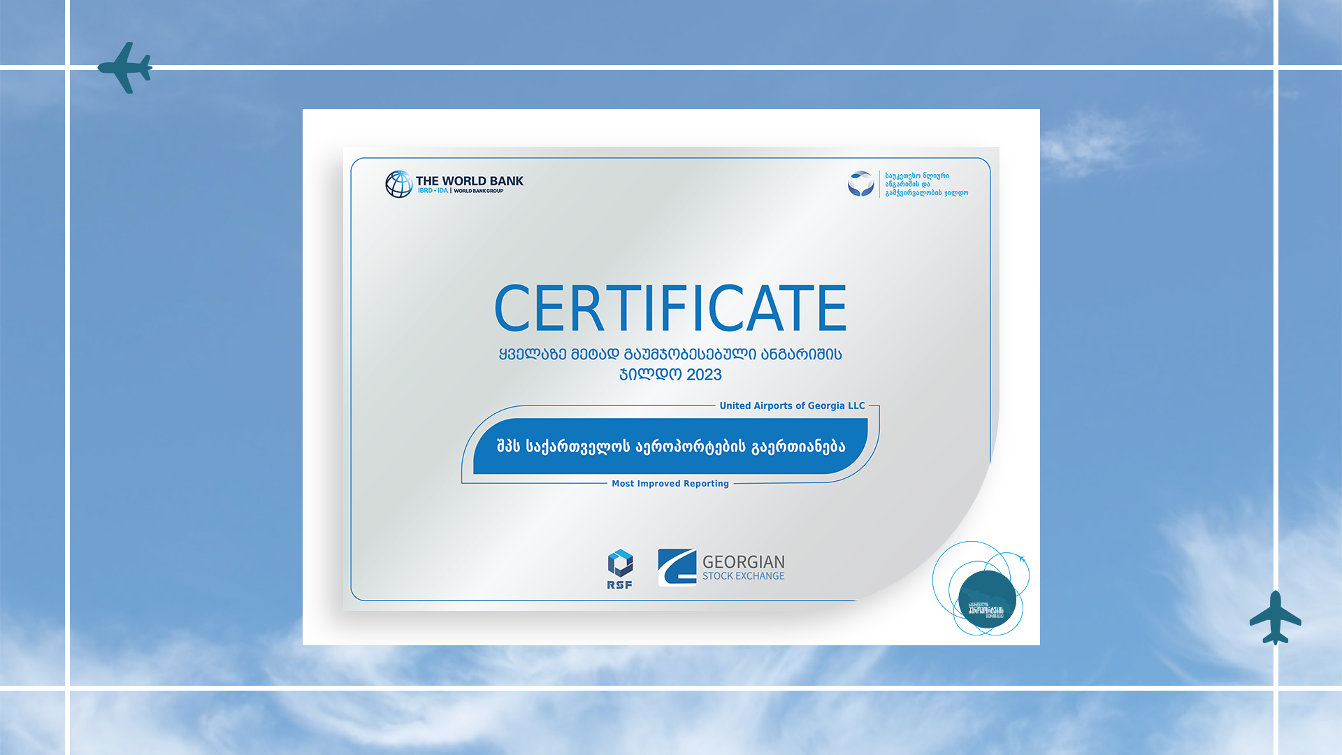 საქართველოს აეროპორტების გაერთიანება საუკეთესო წლიური ანგარიშის და გამჭვირვალობის BARTA 2023-ის გამარჯვებულთა შორისაა