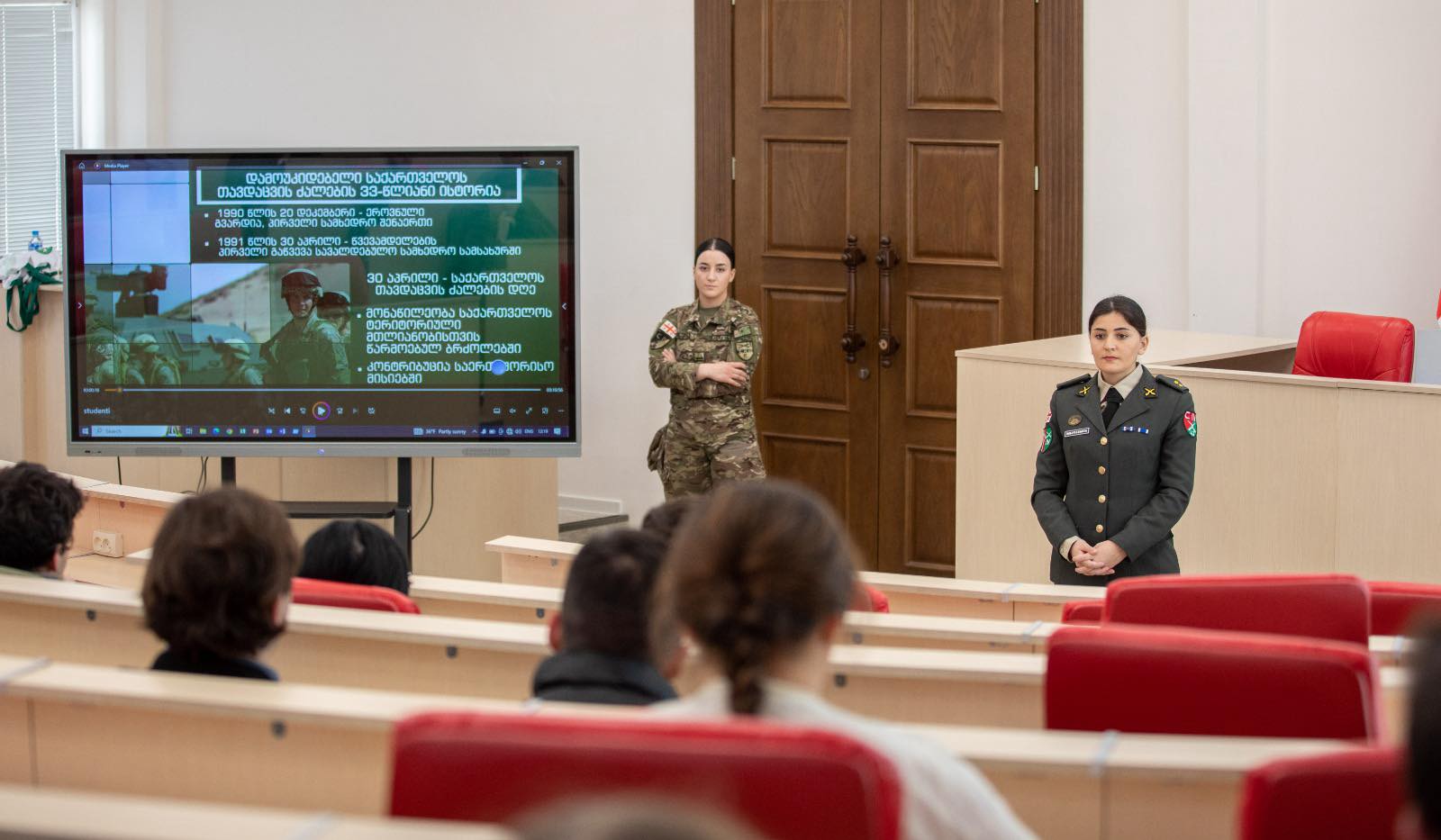 სამხედრო მოსამსახურეები ევროპის უნივერსიტეტის სტუდენტებს შეხვდნენ