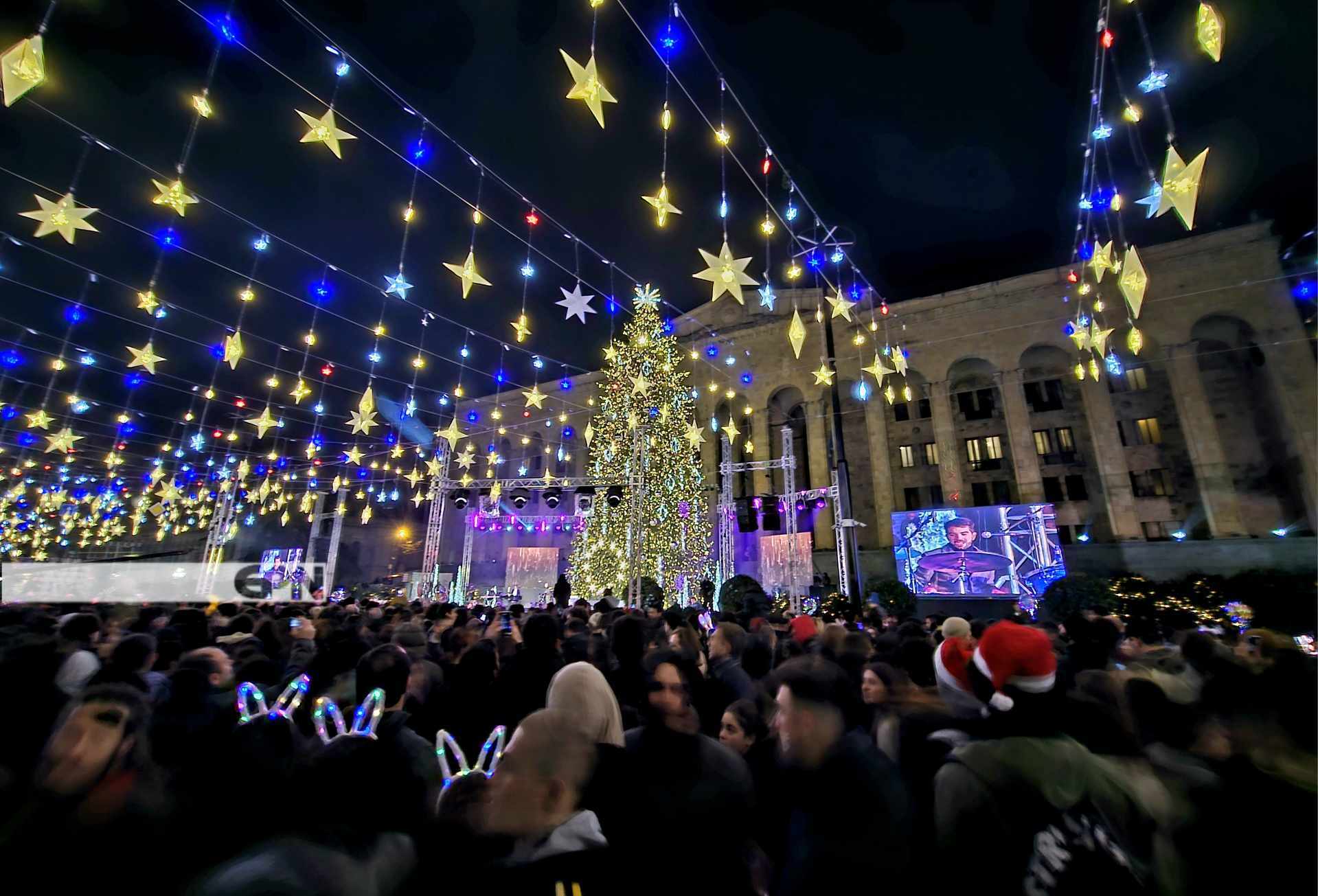 საქართველოს პარლამენტის წინ ქვეყნის მთავარი ნაძვის ხე აინთო