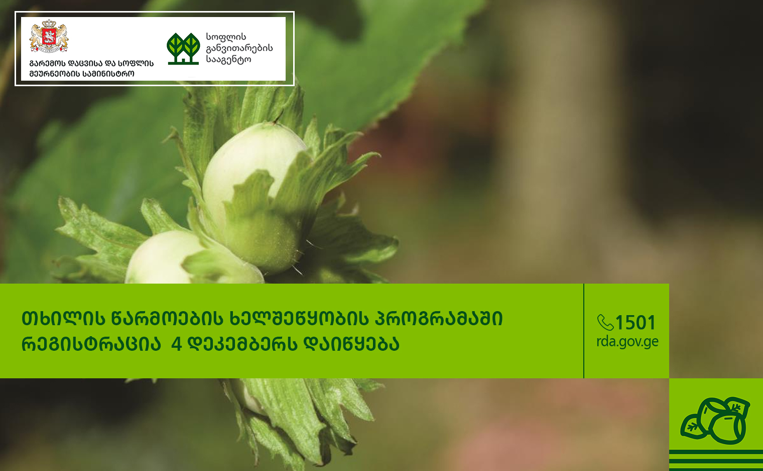 თხილის წარმოების ხელშეწყობის პროგრამაში რეგისტრაცია 4 დეკემბერს დაიწყება