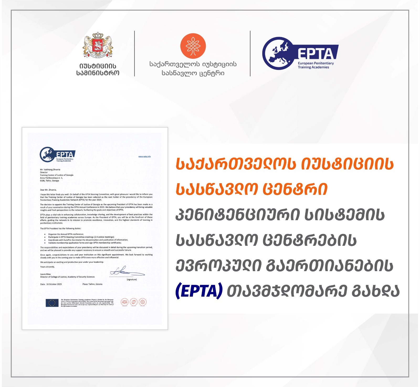 ბრეგაძე - საქართველოს იუსტიციის სასწავლო ცენტრი EPTA-ს თავმჯდომარე გახდა