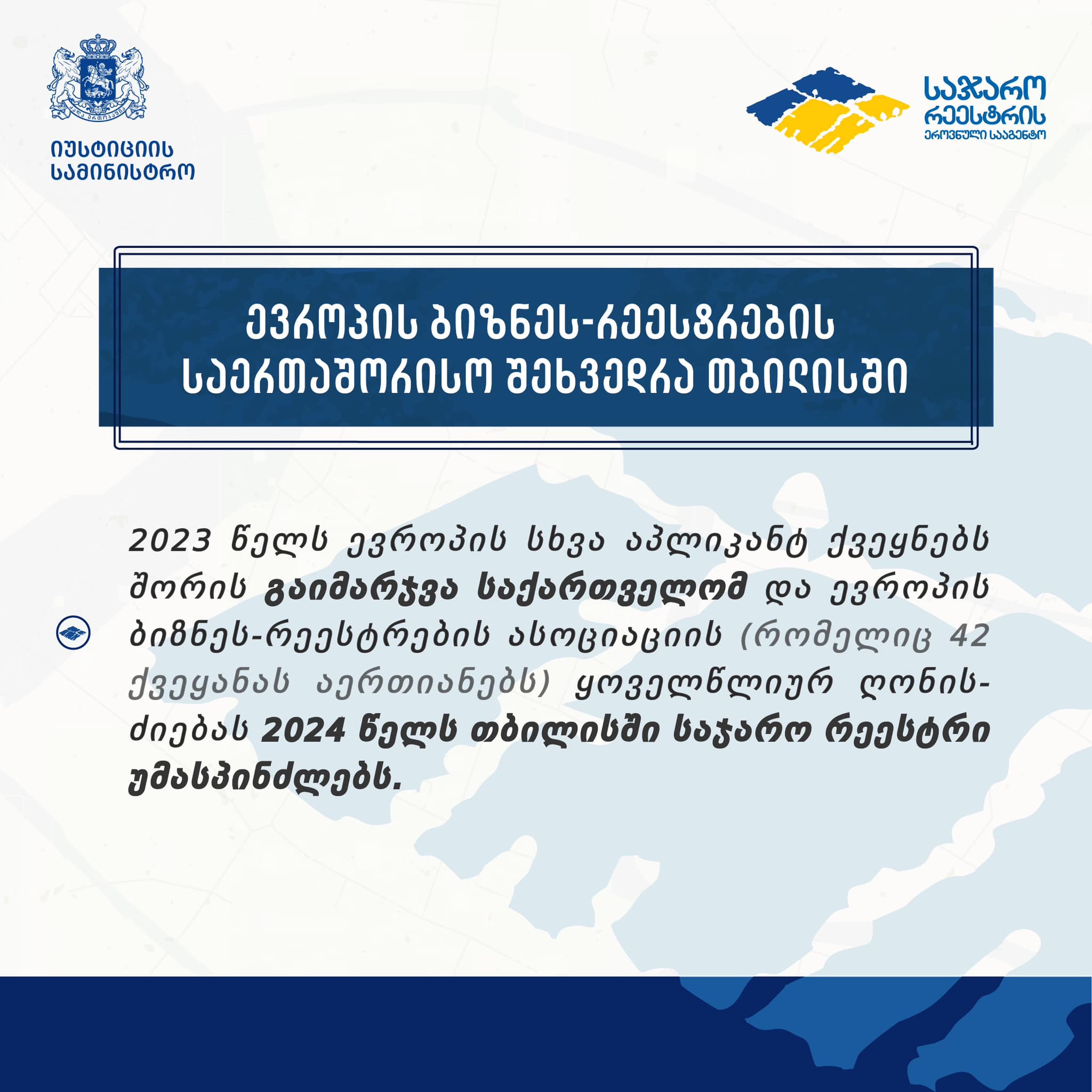 ბრეგაძე - ევროპის ბიზნეს-რეესტრების ასოციაციის ყოველწლიურ ღონისძიებას 2024 წელს თბილისში საჯარო რეესტრი უმასპინძლებს