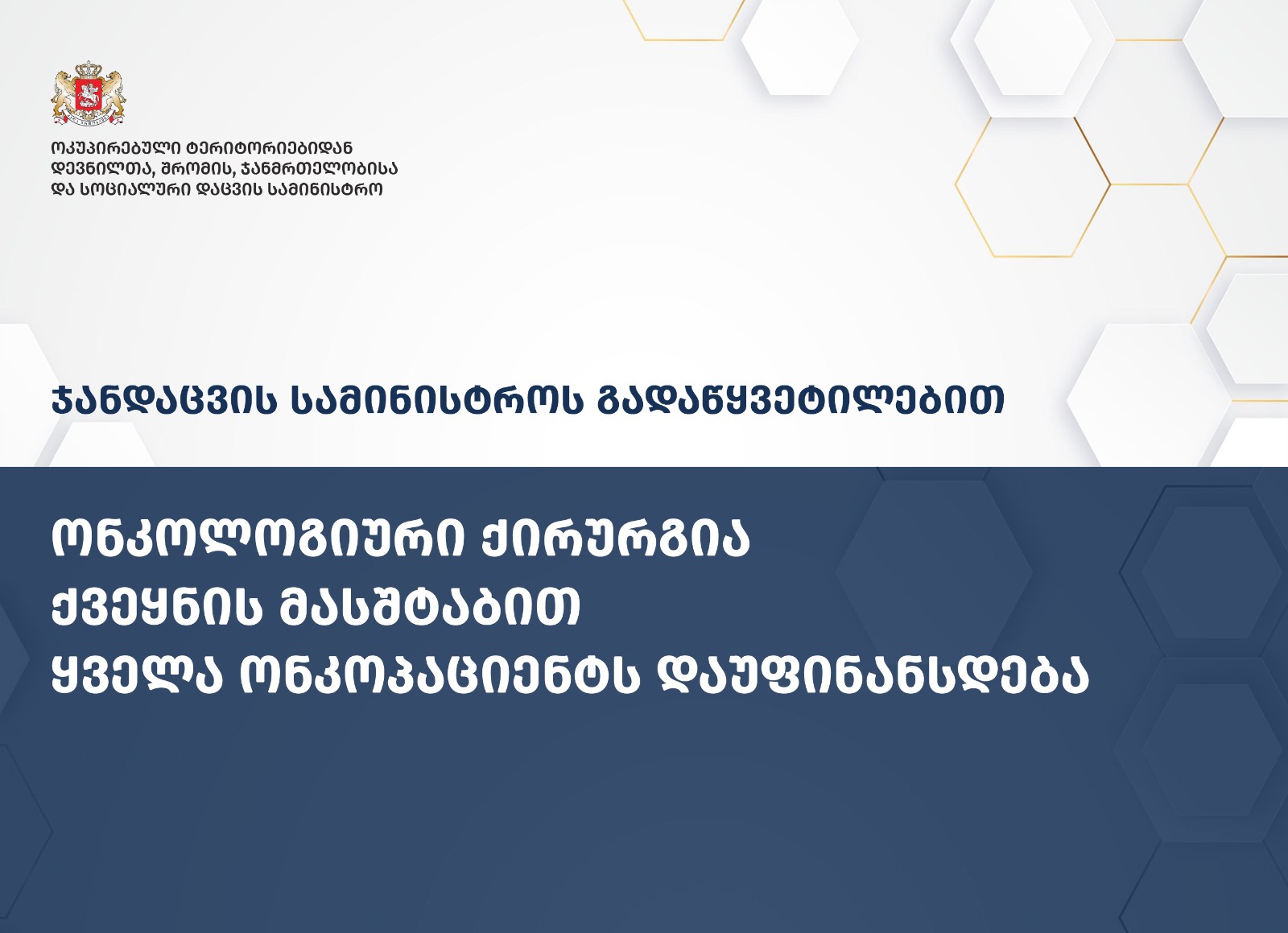 ჯანდაცვის სამინისტრო - ონკოლოგიური ქირურგია, ქვეყნის მასშტაბით, ყველა ონკოპაციენტს დაუფინანსდება