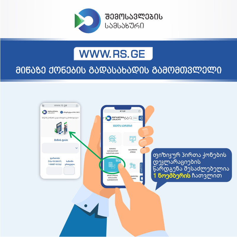 შემოსავლების სამსახური გადასახადის გადამხდელებს ახალ ელექტრონულ სერვისს - „მიწაზე ქონების გადასახადის გამომთვლელს“ სთავაზობს