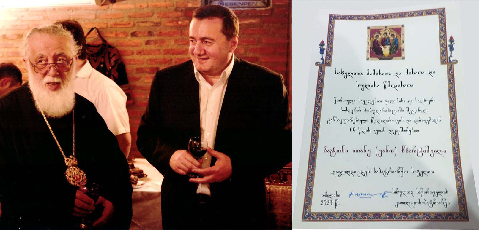 ილია II-მ ვანო ჩხარტიშვილი საპატრიარქოს სპეციალური სიგელით დააჯილდოვა