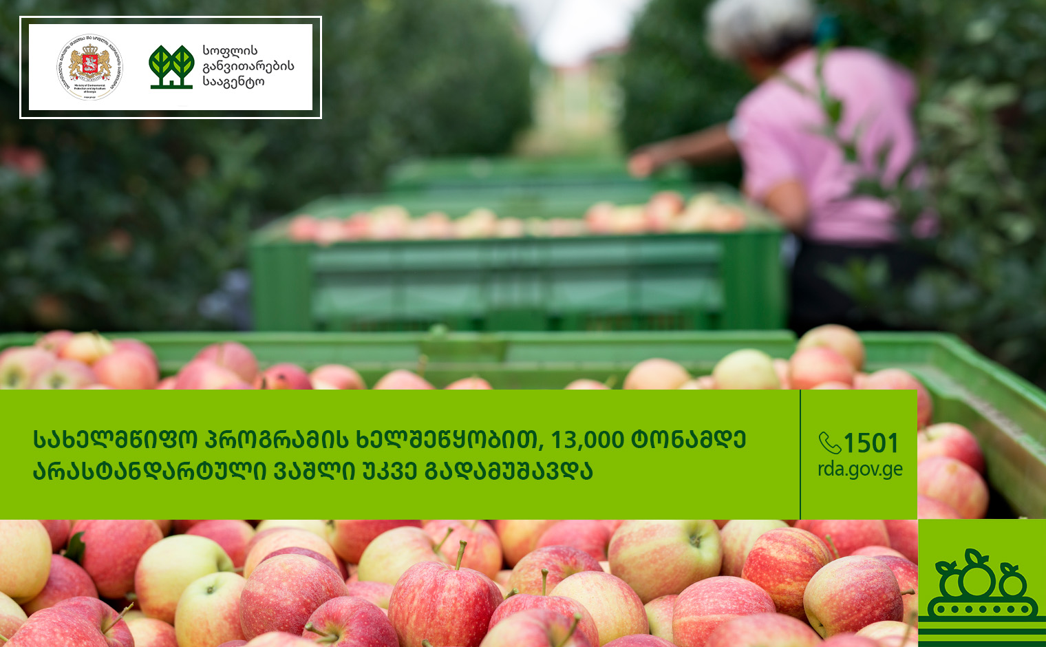 არასტანდარტული ვაშლის რეალიზაციის ხელშეწყობის სახელმწიფო პროგრამის ფარგლებში, 13 000 ტონამდე ვაშლი უკვე გადამუშავდა