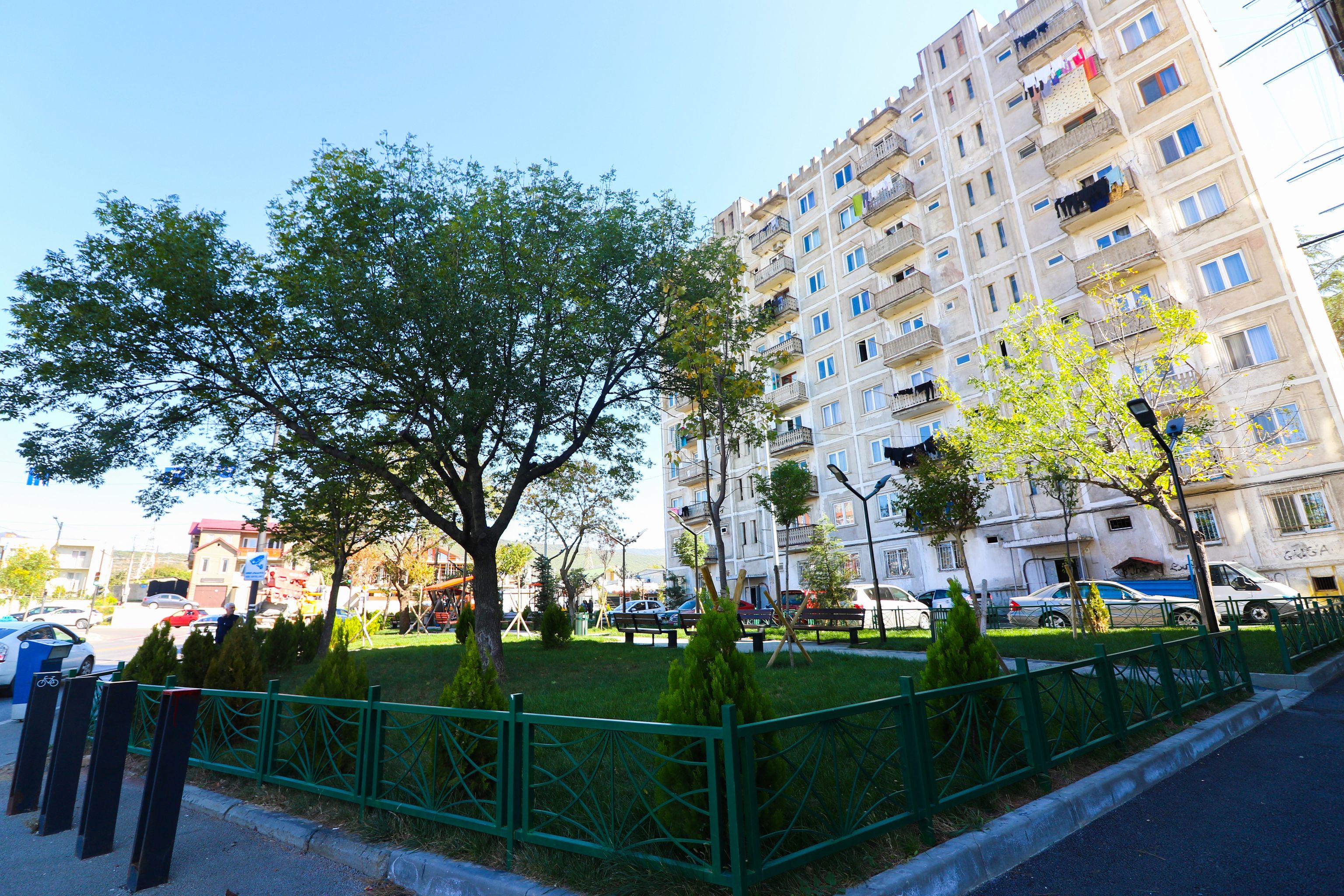 გლდანის გამგეობამ ორ მისამართზე სკვერის მოწყობა დაასრულა