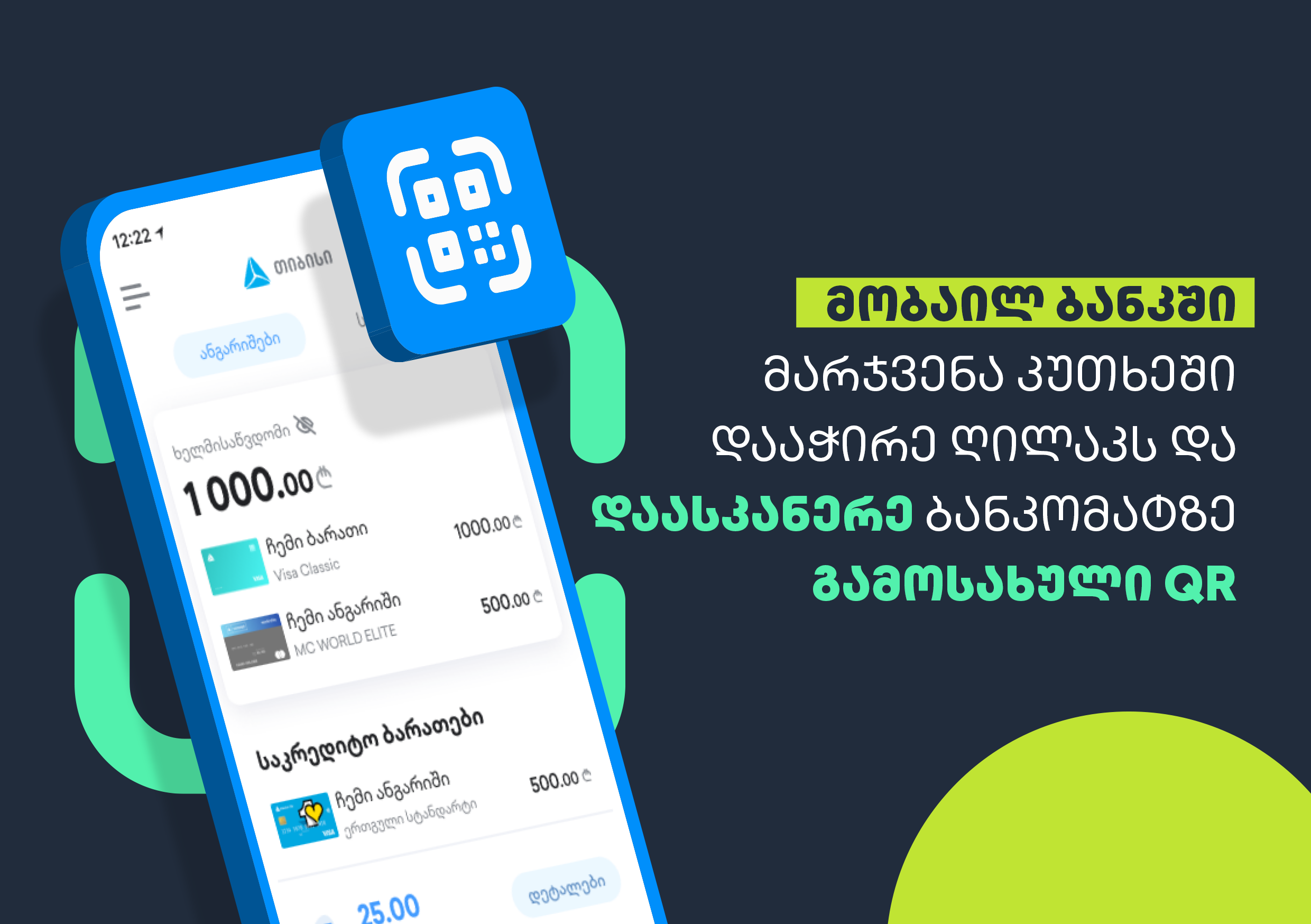 „თიბისის“ ციფრულ ბანკში თანხის განაღდება QR კოდით შეგიძლიათ