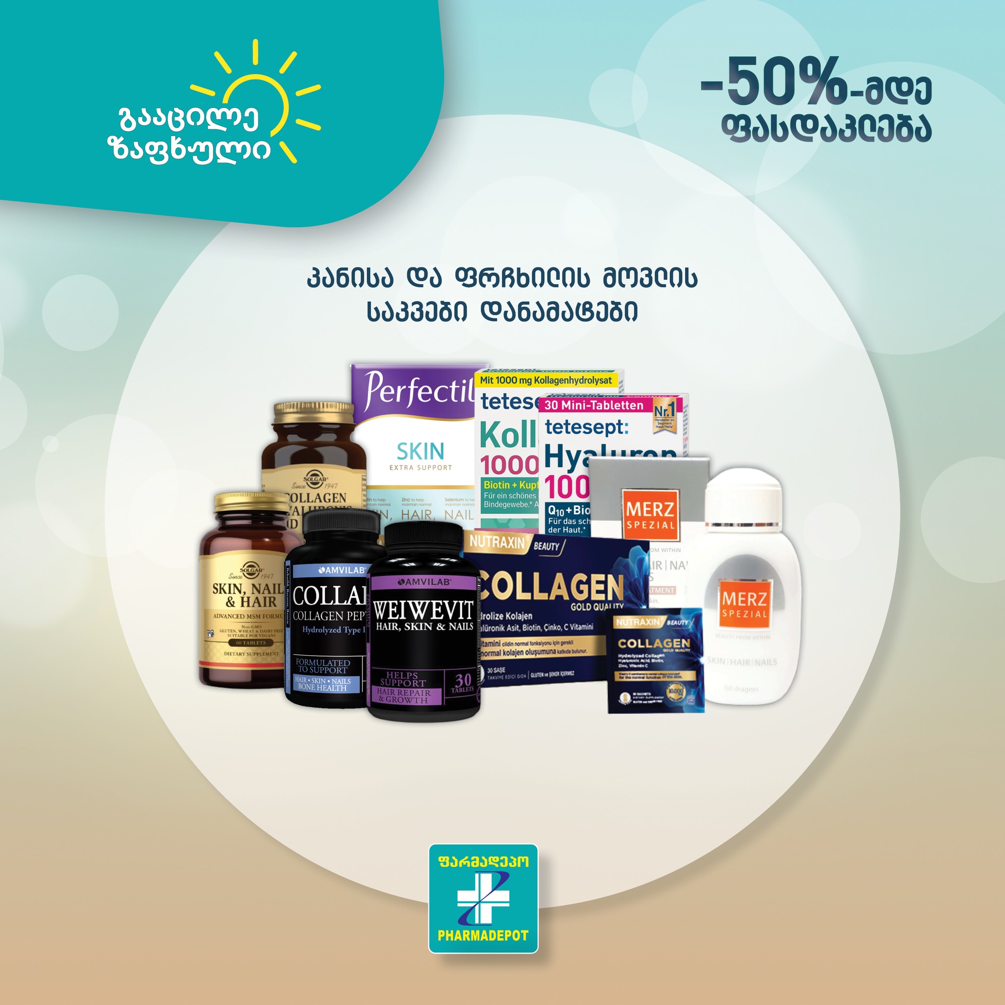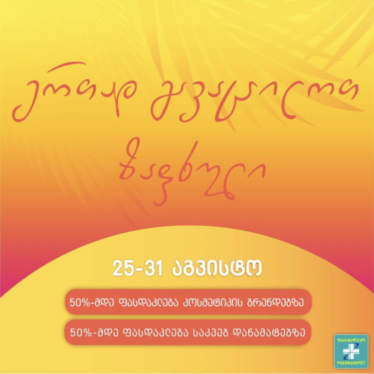 25 აგვისტოდან 31 აგვისტოს ჩათვლით, „ფარმადეპოში“ -50%-მდე ფასდაკლებაა კოსმეტიკის რჩეულ ბრენდებზე და საკვებ დანამატებზე