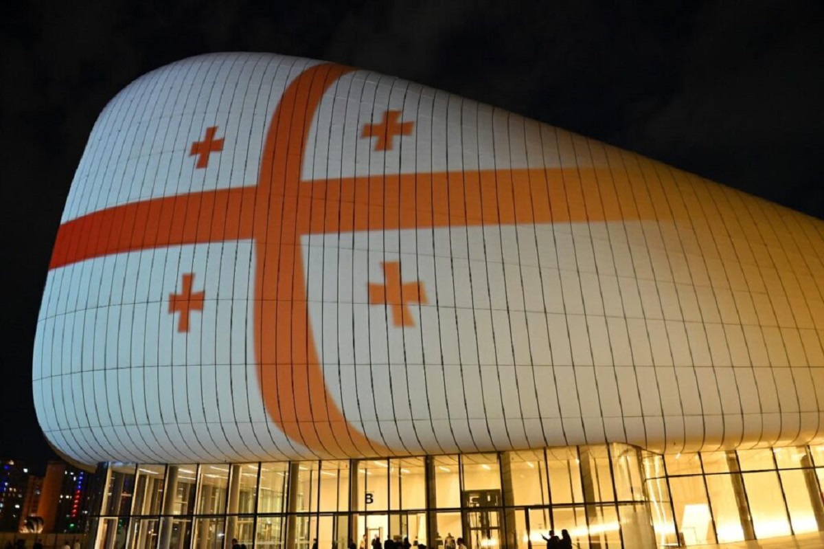 ბაქოში ჰეიდარ ალიევის ცენტრი საქართველოს დროშის ფერებში განათდა