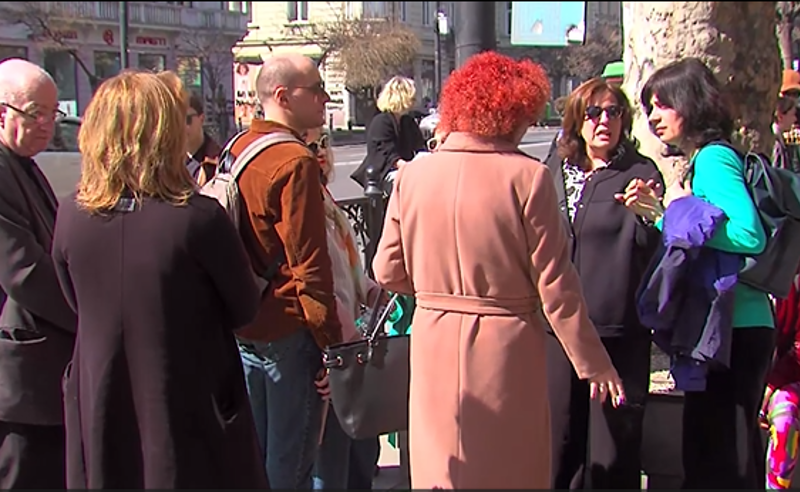 თეატრალურ უნივერსიტეტთან, რექტორთან შეხვედრის მოთხოვნით, მოქალაქეები შეიკრიბნენ