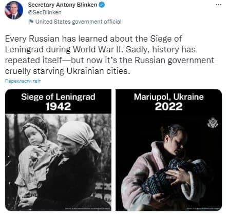 ენტონი ბლინკენმა მარიუპოლის ბლოკადა ლენინგრადის ბლოკადას შეადარა