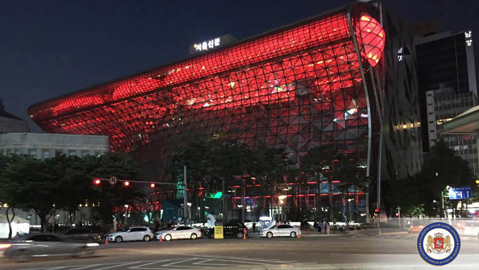 სეულის მერიის შენობა ქართული დროშის ფერებით განათდა