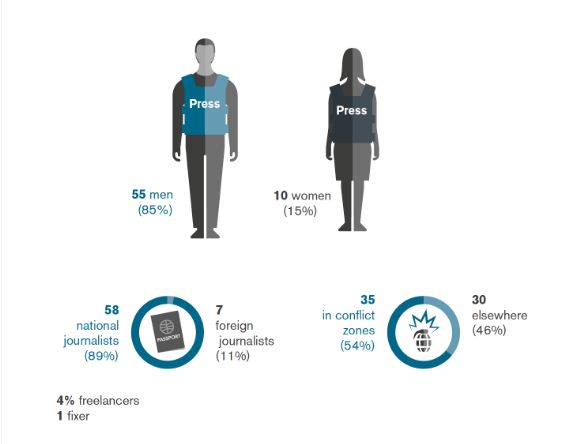 სამსახურეობრივი მოვალეობის შესრულების დროს 2017 წელს 65 ჟურნალისტი დაიღუპა