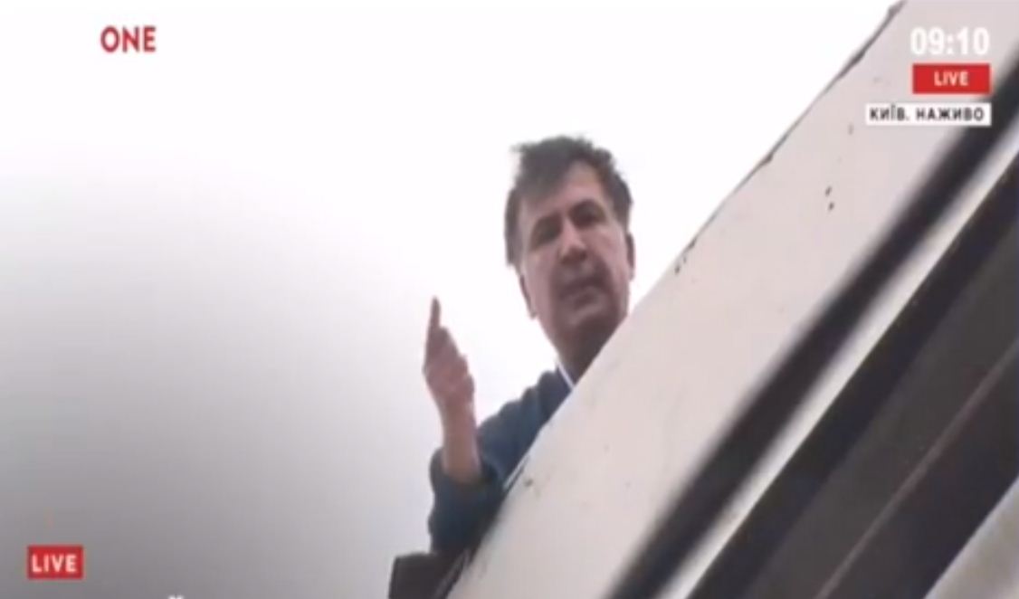 LB.ua - სააკაშვილი მისი ბინის ჩხრეკის გამო, შენობის სახურავზე ავიდა და გადმოხტომით იმუქრებოდა