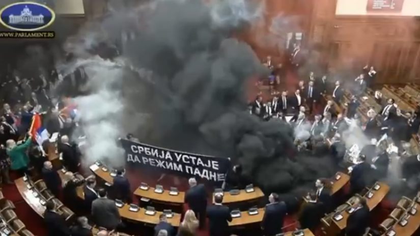 სერბეთის პარლამენტში ყუმბარები და ცრემლმდენი გაზი ისროლეს, არიან დაშავებულები [ვიდეო]
