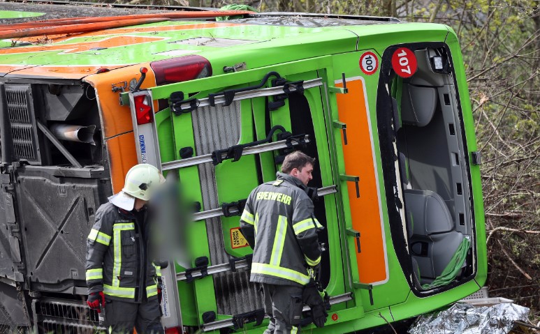 გერმანიაში, ლაიფციგთან ახლოს, ავტობუსი ავტომაგისტრალზე მოძრაობისას გადატრიალდა - დაიღუპა ხუთი ადამიანი