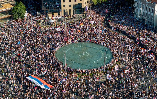 ბელგრადში მასშტაბური ანტისამთავრობო დემონსტრაციის დროს აქციის მონაწილეებსა და პოლიციას შორის დაპირისპირება მოხდა