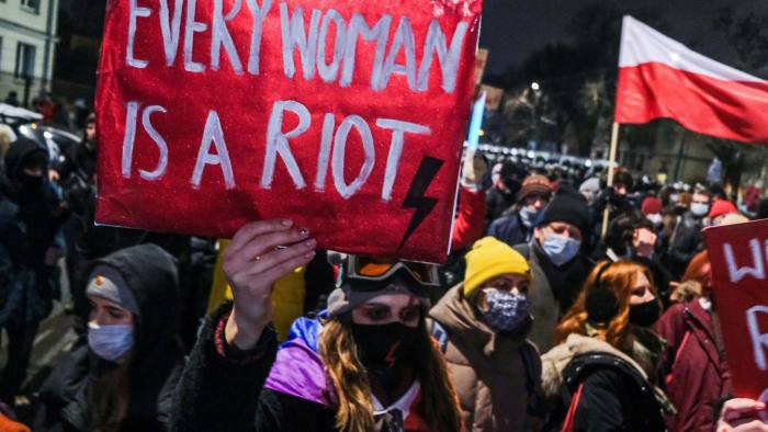 პოლონეთში აბორტების შესახებ კანონის გამკაცრების წინააღმდეგ საპროტესტო აქცია მიმდინარეობს