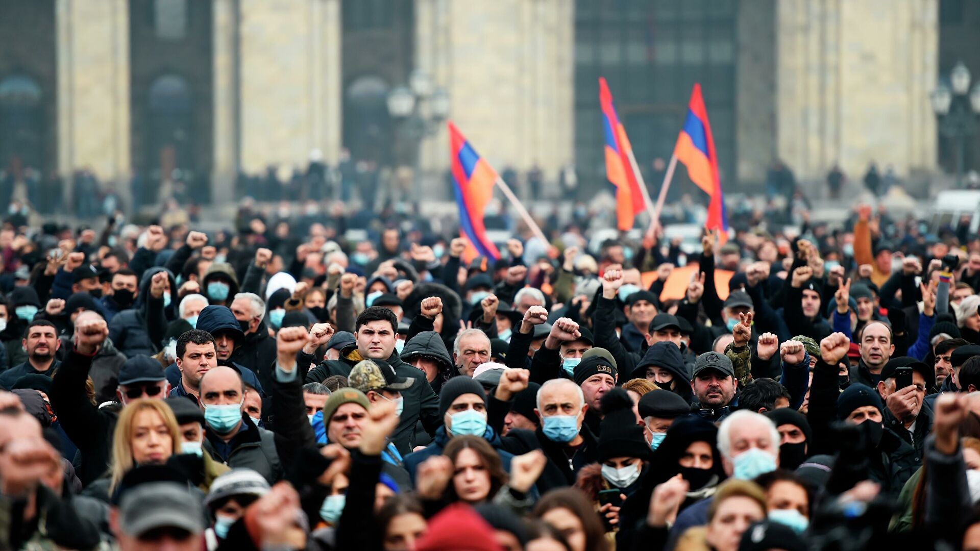 ერევანში, პარლამენტთან ნიკოლ ფაშიანიანის გადადგომის მოთხოვნით საპროტესტო აქცია მიმდინარეობს